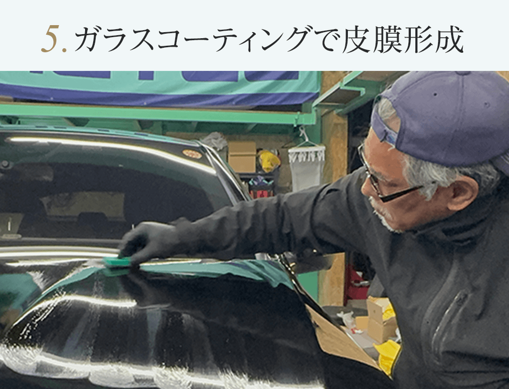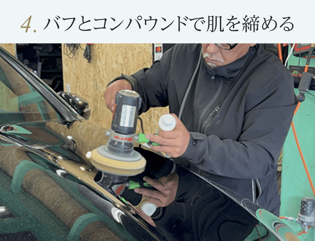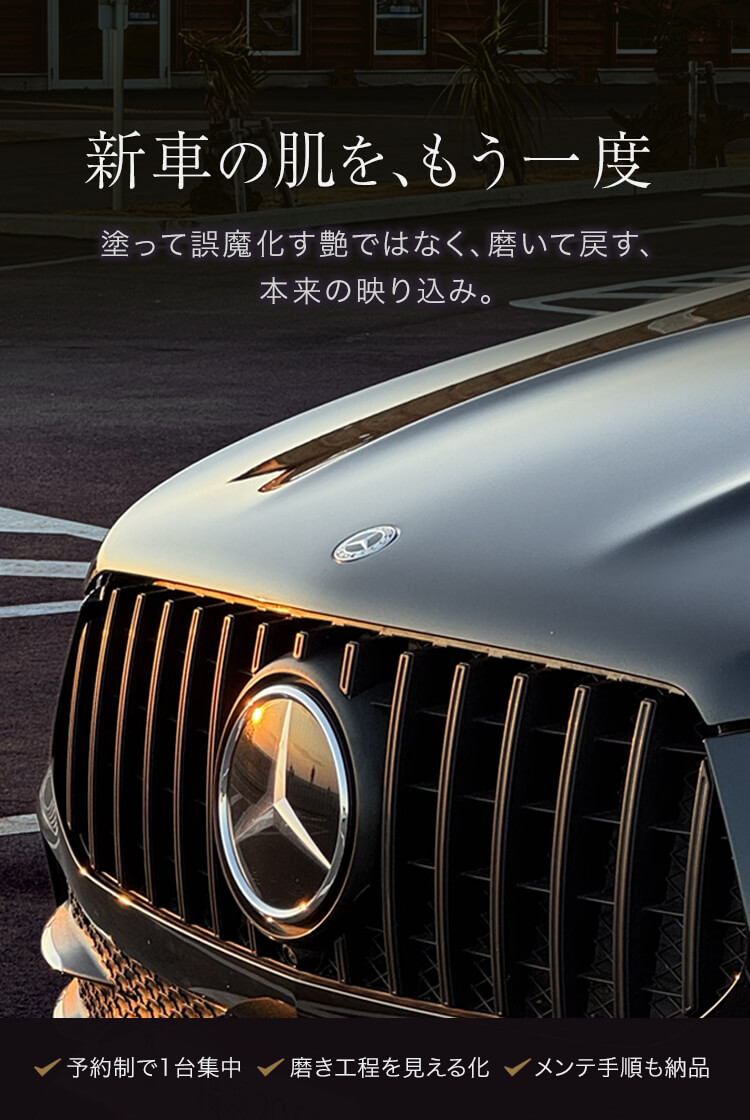 傷が消えて、映り込みの輪郭がはっきりした瞬間が一番楽しいです。今日より明日、明日より次。まだ良くできると思いながら、一台一台向き合っています。